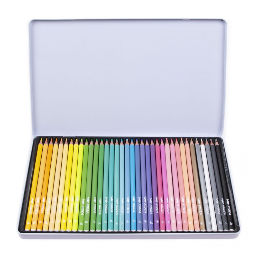 Kredki pastelowe trójkątne w metalowym pudełku 36 kolorów Kidea