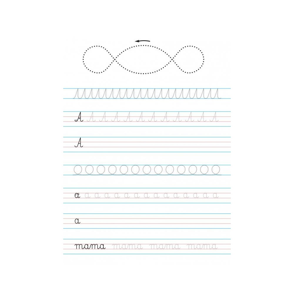 • Większe przestrzenie między liniami oraz kreślenie po śladach inicjujących odpowiednie ułożenie rączki do zapisu konkretnych liter sprawią, że nauka stanie się przyjemnością, a nie karą. Serdecznie polecamy!
