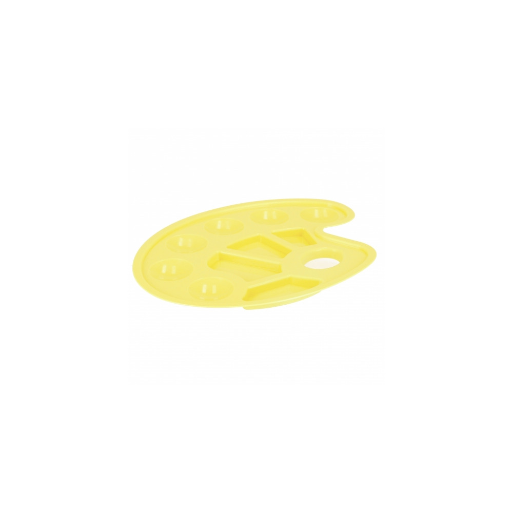 Paleta do farb z kolekcji STARPAK dedykowanej dla szkół. Paleta z wygodnym uchwytem, pozwala na poszukiwanie własnych rozwiązań kolorystycznych i pomoże każdemu młodemu malarzowi w pierwszych próbach artystycznych. Na palecie znajduje się 10 pojemniczków w do mieszania farb. Paleta w kolorze żółtym. Wymiary produktu 23x17cm. Produkt przeznaczony dla dzieci w wieku: 3+. Pakowany w folię z zawieszką.