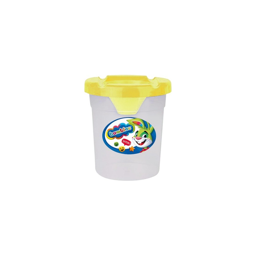Plastikowy pojemnik do płukania pędzli z systemem lejka zabezpieczającym przed rozlaniem wody.