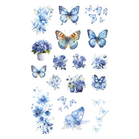 ➡️ Uniwersalność zastosowania - kompozycja kwiatów i motyli w różnych odcieniach niebieskiego sprawdzi się w różnych stylizacjach, od nowoczesnych po klasyczne.