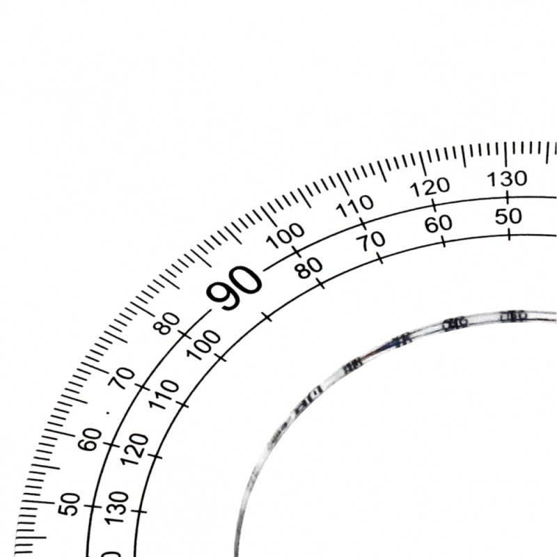 ⭐ Kątomierz wykonany z trwałego plastiku o zakresie 180° i linijką o długości 10 cm z podziałką na centymetry i milimetry.