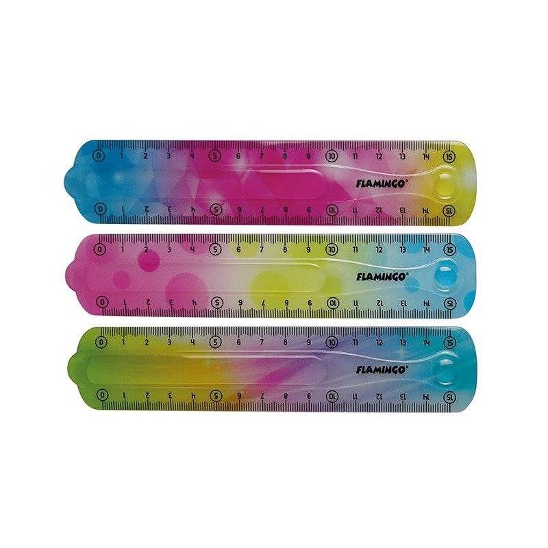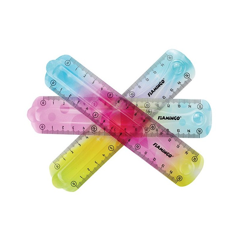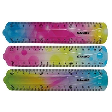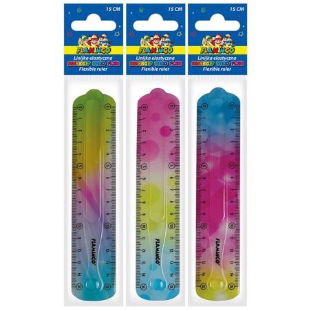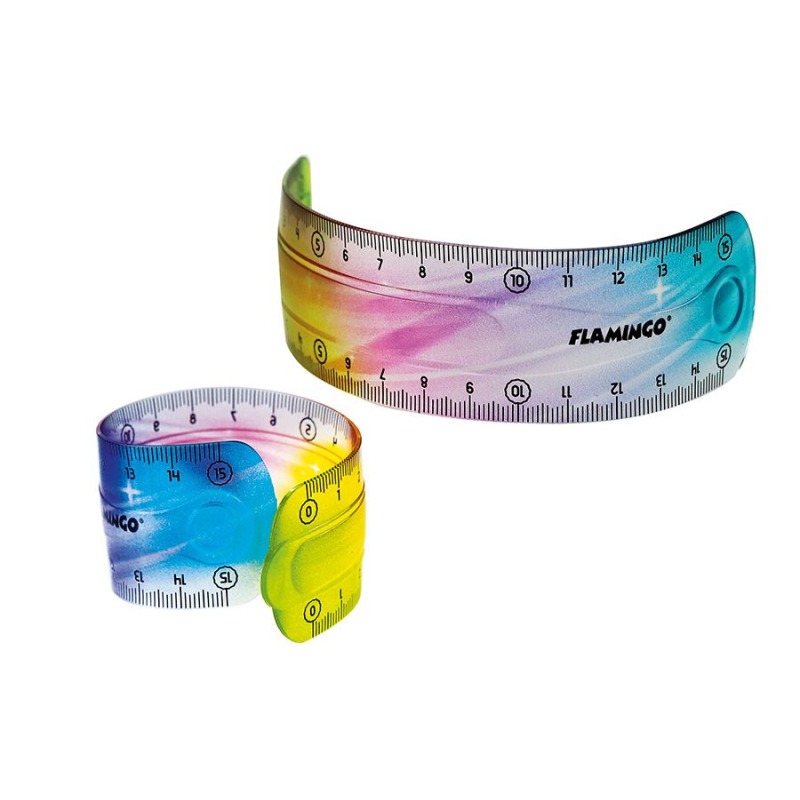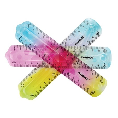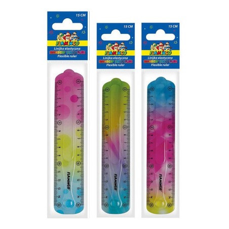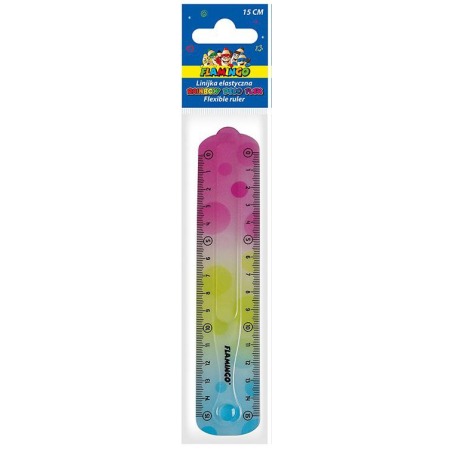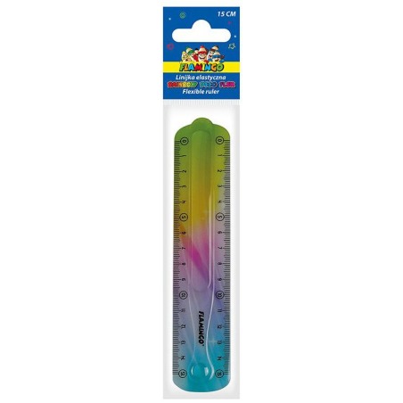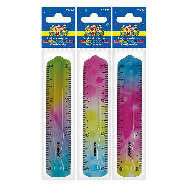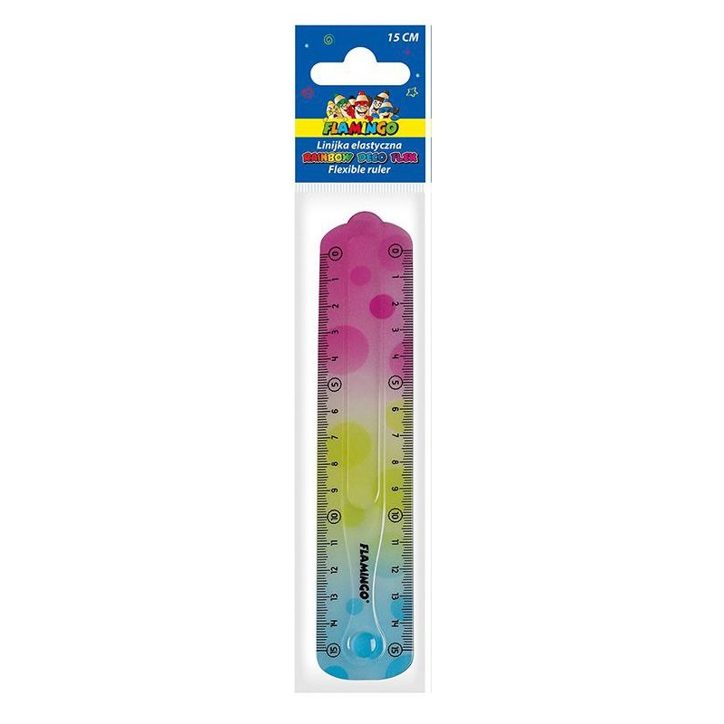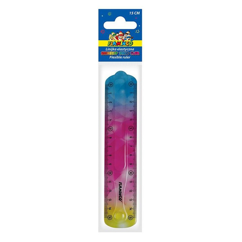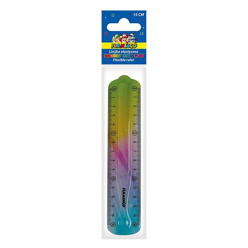 ➡️ Przezroczysta, plastikowa linijka w tęczowych barwach.