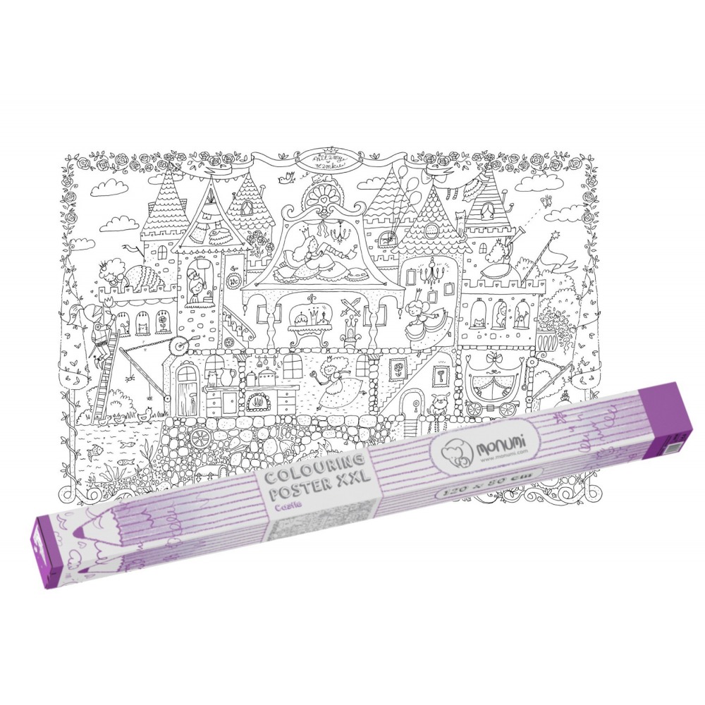 Pokoloruj wielki zamek księżniczki farbami, kredkami lub flamastrami. Możesz go zawiesić na ścianie, aby był ozdobą Twojego pokoju. Twój mały świat nabierze barw i bajkowego klimatu.