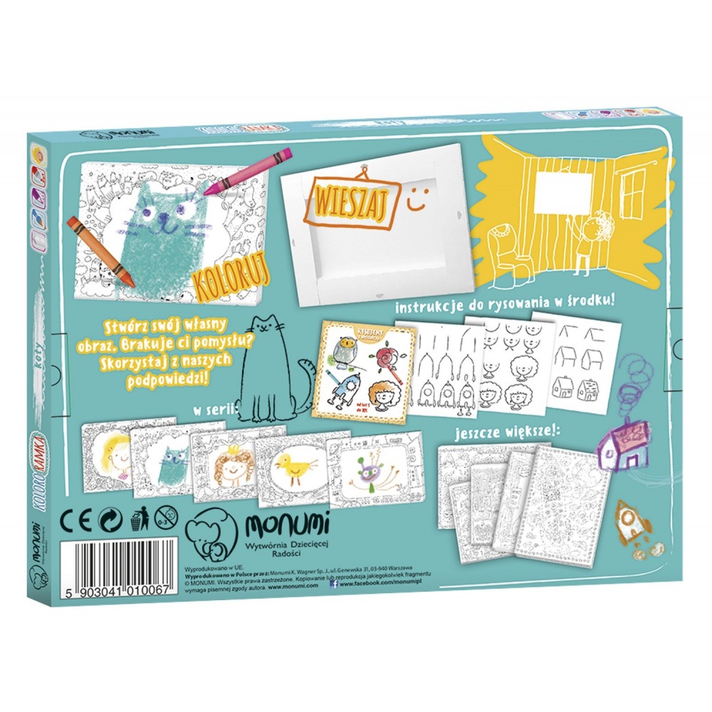 Ile kotów widzisz? Pokoloruj je wszystkie, skorzystaj z propozycji prostych rysunków, znajdujących się z tyłu opakowania i stwórz niezwykłe dzieło sztuki małego artysty. Świetna zabawa i oryginalna dekoracja pokoju miłośnika kotów.