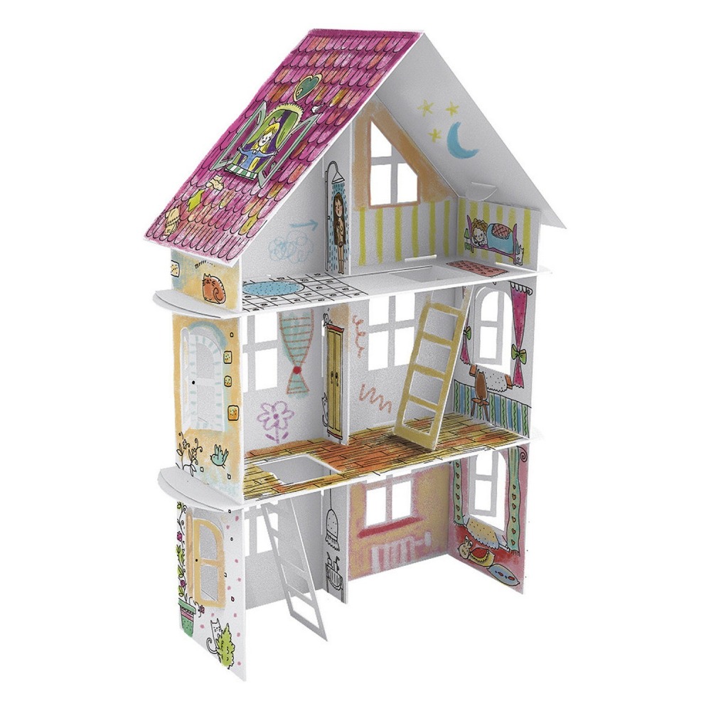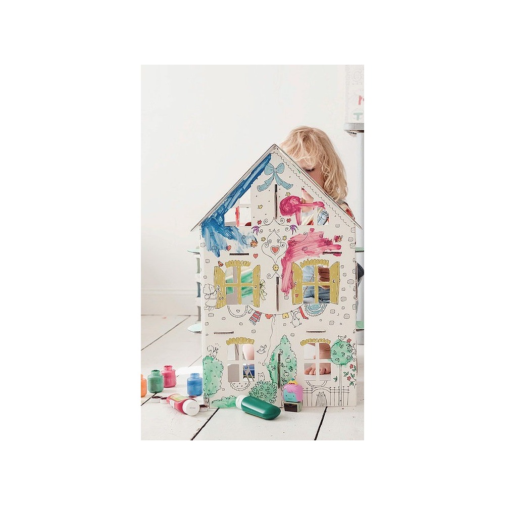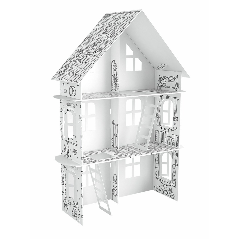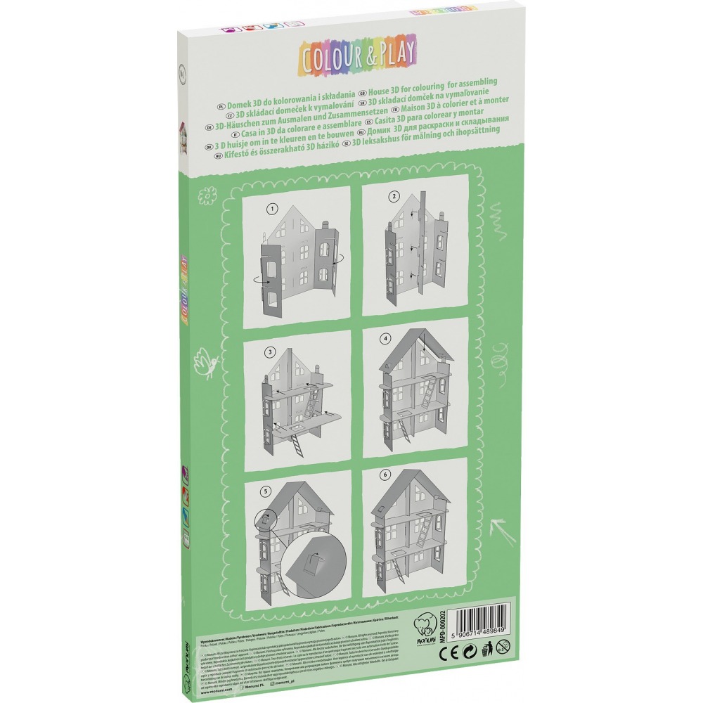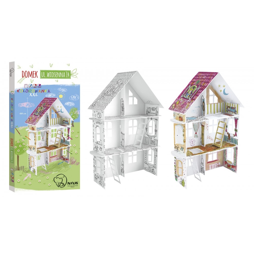 W pudełku znajdziesz wszystko, czego potrzebujesz, aby stworzyć domek przy ulicy Wiosennej 14, pełen barw, radości i roślin. Domek ma aż 3 piętra, drabinkę i spiczasty dach. Udekoruj domek, pokoloruj go farbami, kredkami lub flamastrami, a następnie złóż konstrukcję. Możesz również odwiedzać sąsiadów, wybierając inne propozycje naszych kolorowanych domków.