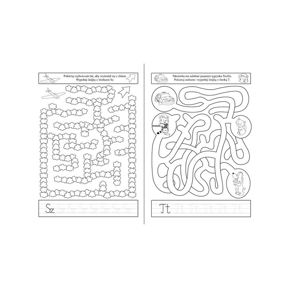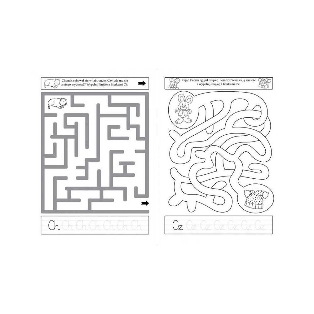 • Pod każdą łamigłówką znajduje się szlaczek, dodatkowe ćwiczenie, dzięki któremu Twoje dziecko utrwalali podstawowe kształty.