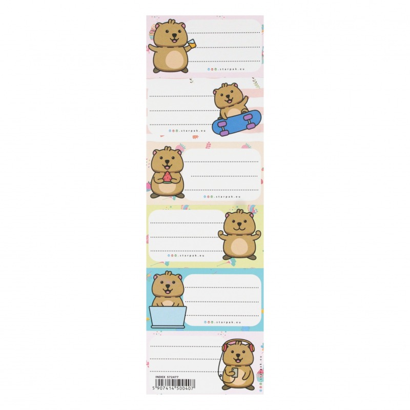 ⭐ Zestaw kolorowych naklejek na zeszyty z grafiką Kuoka z kolekcji STARPAK.