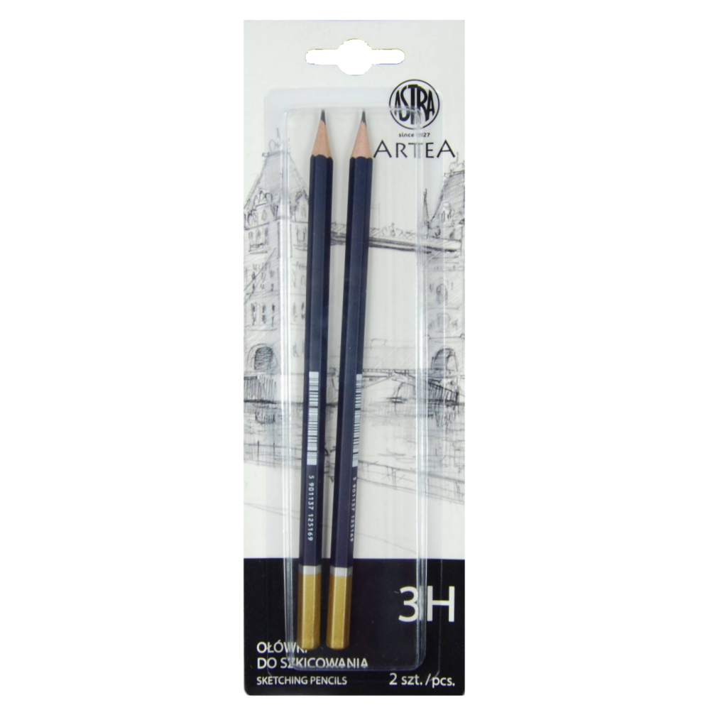 Ołówek 3H blister 2 szt Astra Artea -Ołówki do szkicowania, -Przeznaczone do kreślenia, szkicowania i rysowania, -Twardość: 3H -Heksagonalny kształt