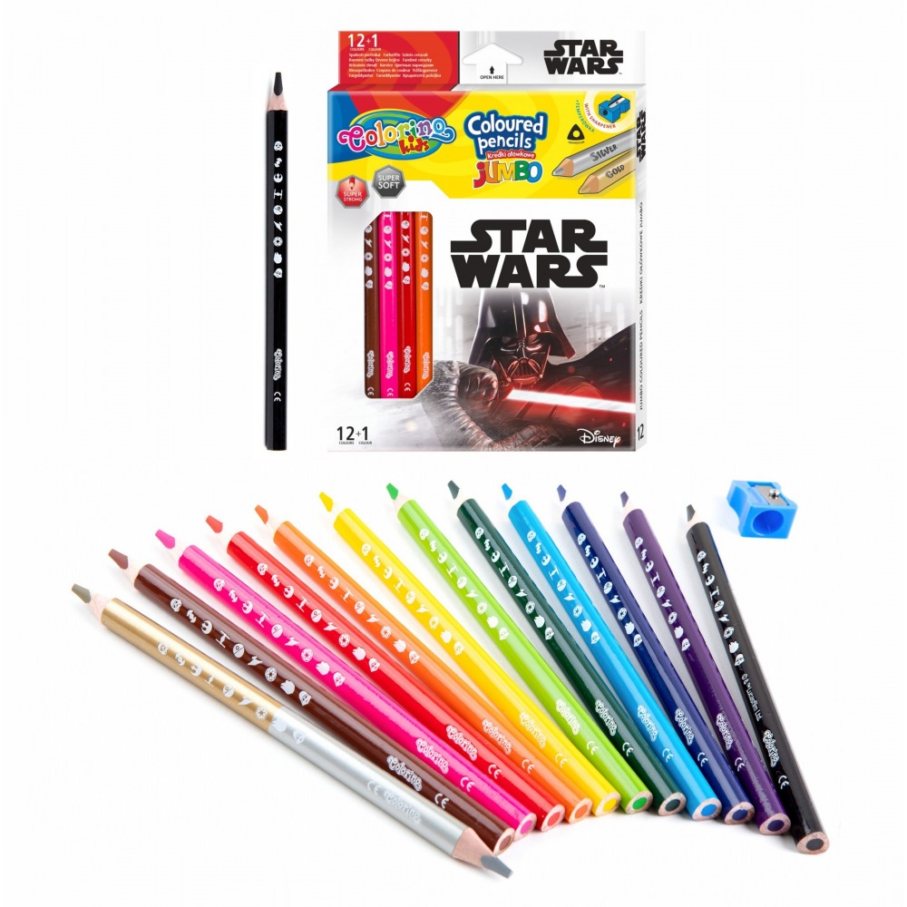 Kredki ołówkowe Jumbo Colorino Star Wars 13 kolorów w zestawie z temperówką.