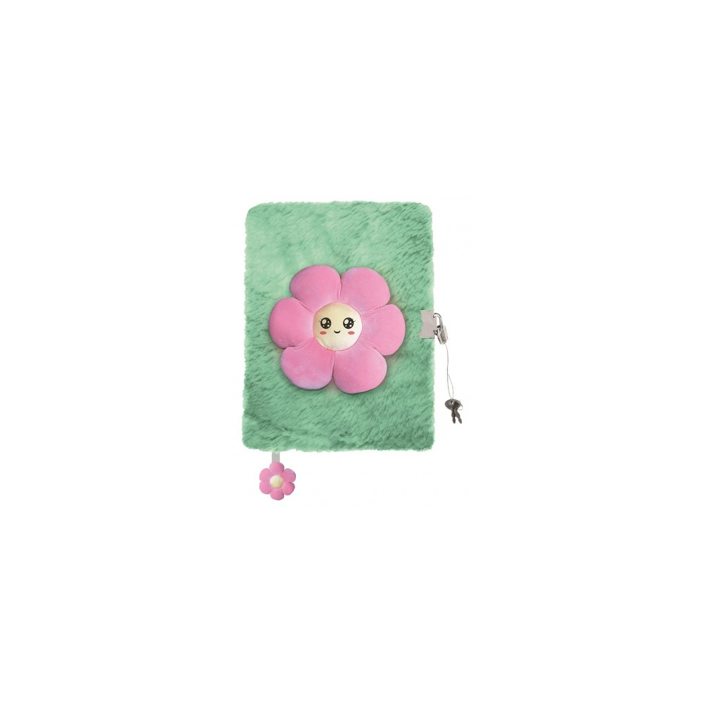 Pamiętnik pluszowy A5 96k Pink Flower miętowy z kwiatkiem Majewski