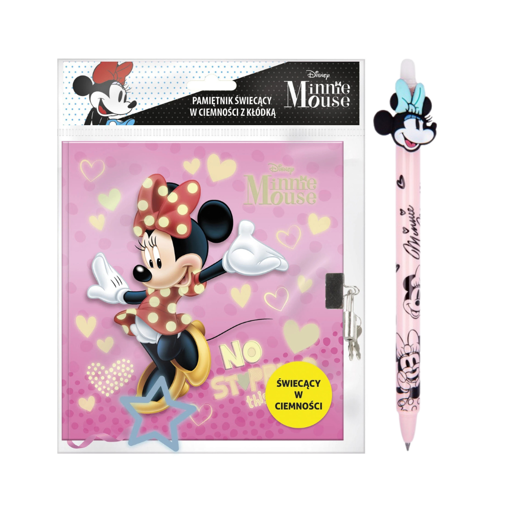 W skład zestawu wchodzi: pamiętnik świecący w ciemności Minnie Mouse, długopis wymazywalny Minnie ( wysyłany losowo)