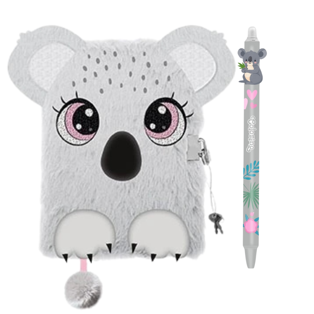 W skłąd zestawu wchodzą: pamiętnik włochacz Koala i Długopis wymazywalny Koala (wysyłany losowo)