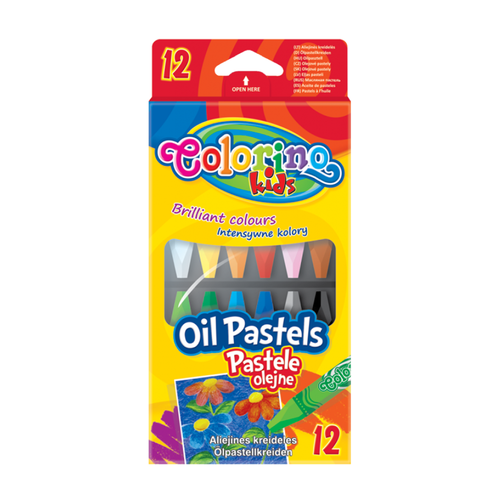 • Klasyczne, hexagonalne pastele olejne w 12 podstawowych kolorach, soczyste kolory, miękkie - idealnie się rozprowadzają.