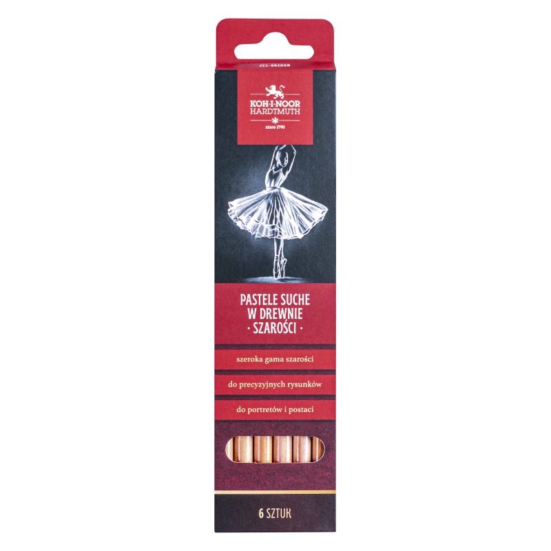Zestaw pasteli suchych w precyzyjnej formie, w drewnianych, precyzyjnych oprawkach. Zawiera szeroką gamę szarości przeznaczoną do rysowania portretu oraz postaci. W zestawie znajduje się również biały pastel, umożliwiający odtworzenie refleksów świetlnych.