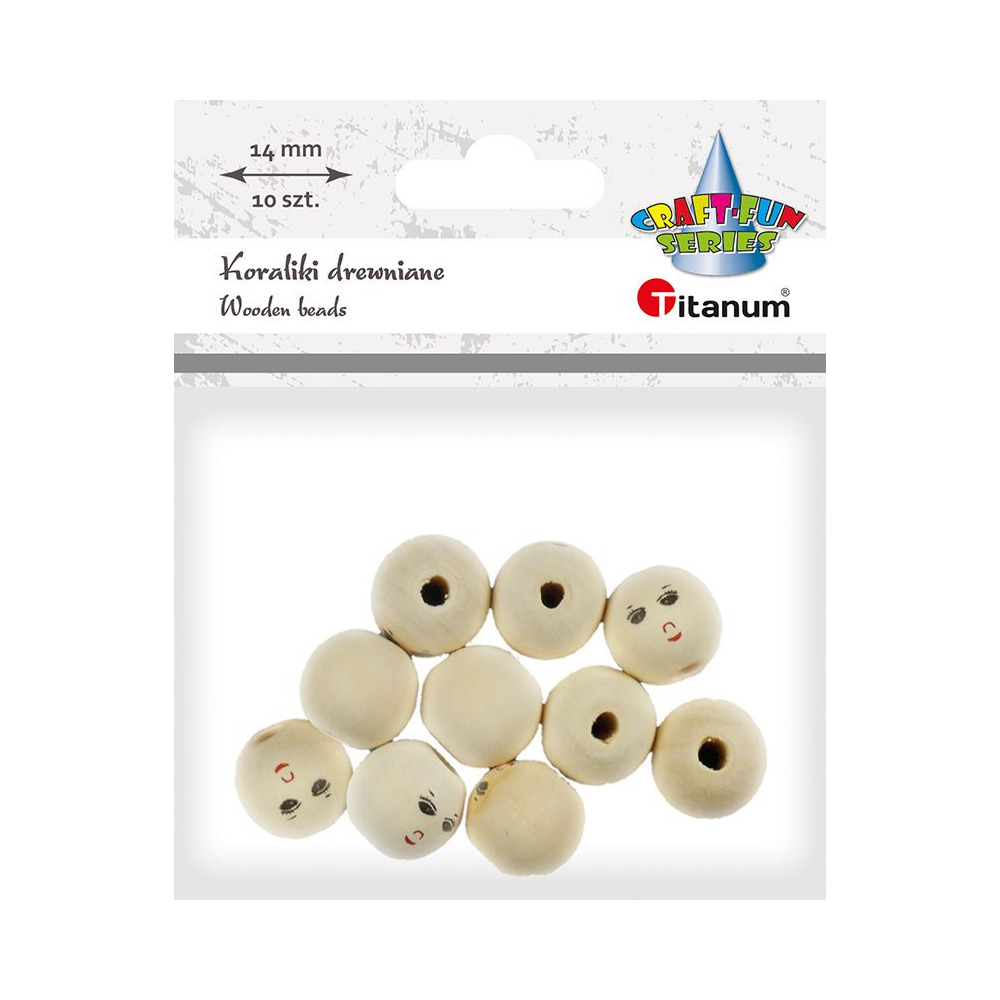 Koraliki drewniane okrągłe buźki 14 mm 10szt Titanum