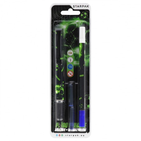 ⭐ Całość została ozdobiona grafiką Football. W zestawie dwa naboje wymienne i dwustronny wymazywacz w pisaku.