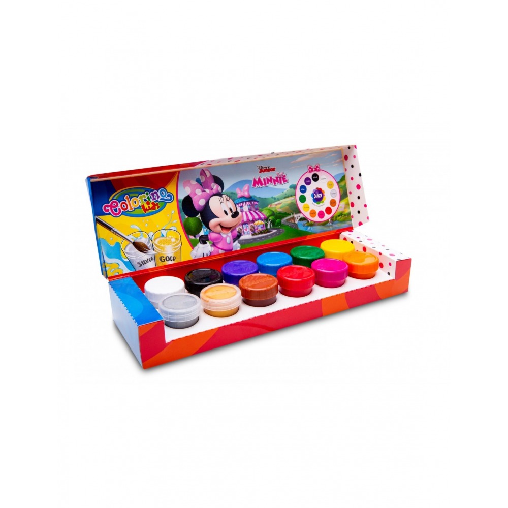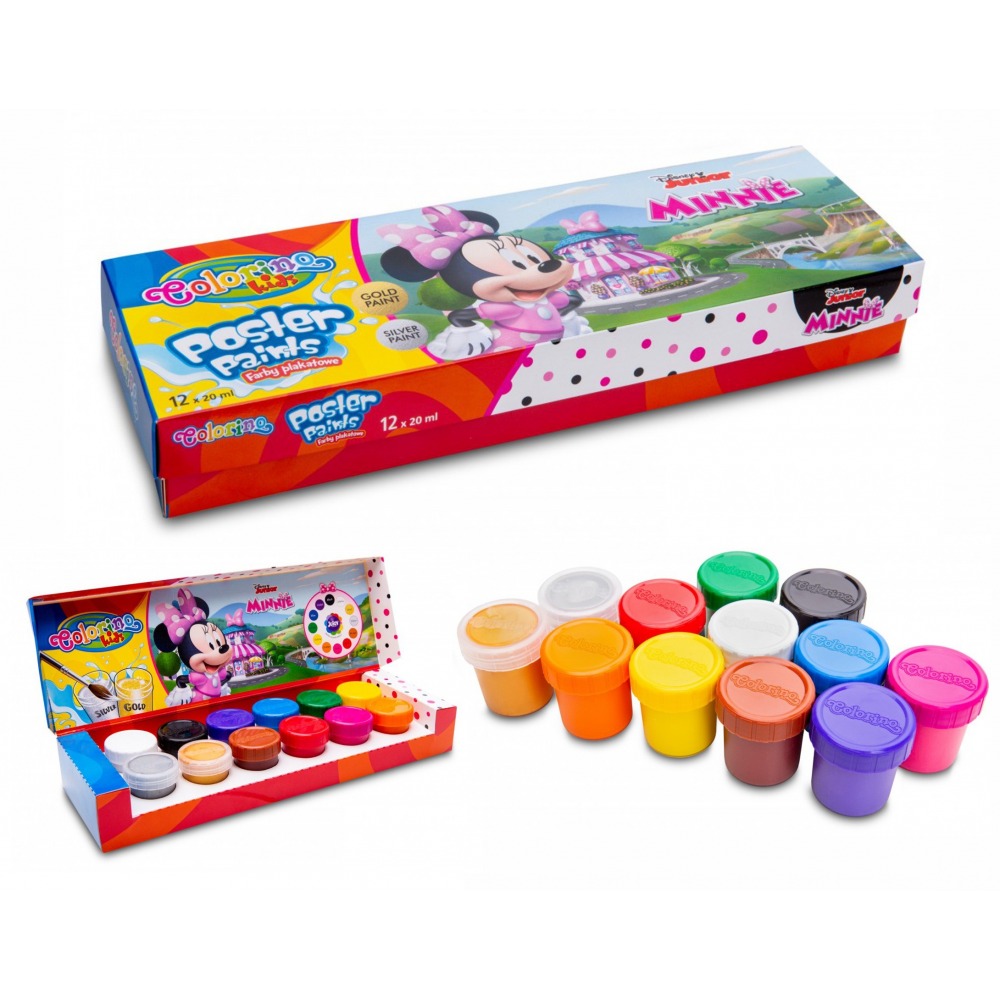 Farby plakatowe Colorino Minnie to 12 soczystych kolorów, a pośród nich także wyjątkowy srebrny oraz złoty.