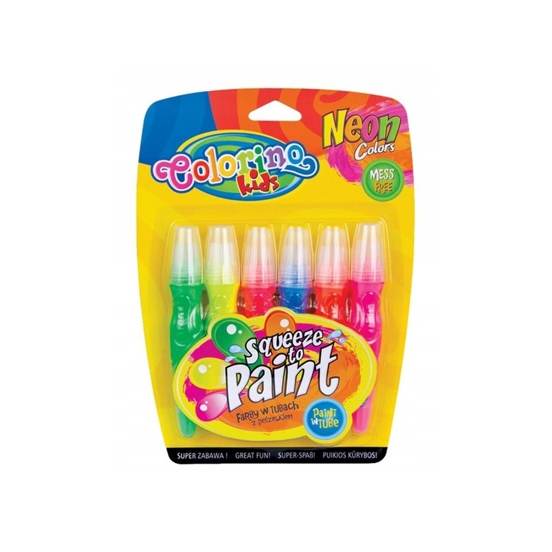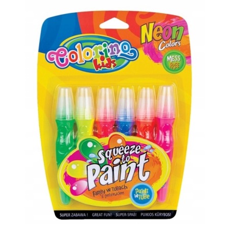 Farby w tubach z pędzelkami w 6 neonowych kolorach