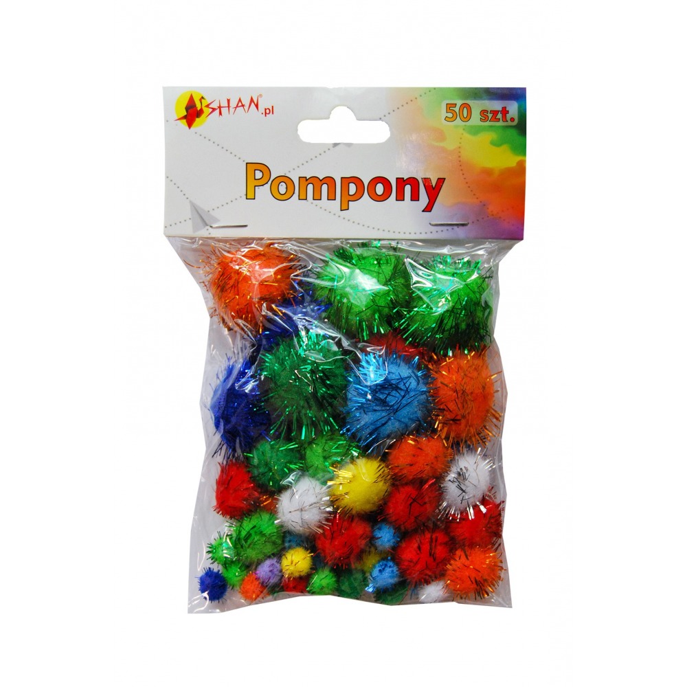 Pompony brokatowe mix kolorów 50 szt Shan SP23