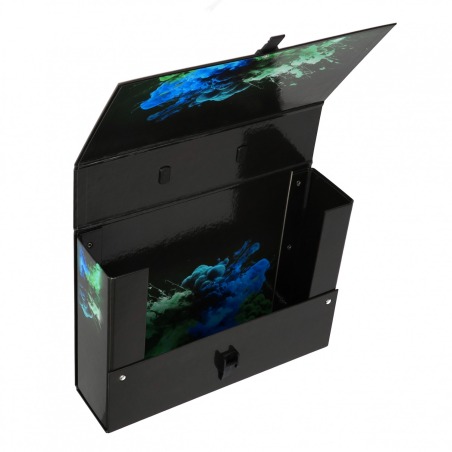 ➡️ Sztywna teczka wykonana z grubego, lakierowanego kartonu.