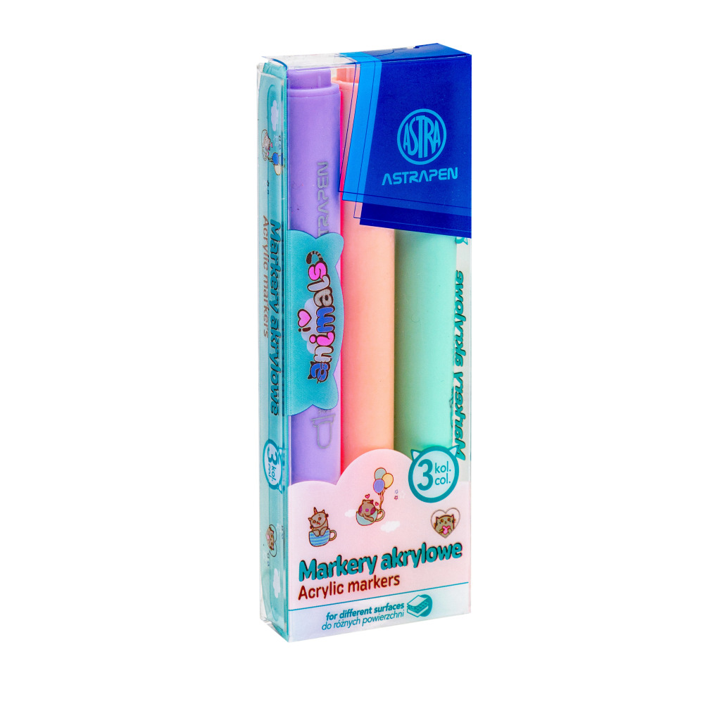 Markery akrylowe w trzech pastelowych kolorach (fioletowy,cielisty,zielony) to idealne narzędzie zarówno do profesjonalnych prac, jak i kreatywnego spędzania czasu. Dzięki trójkątnemu przekrojowi idealnie leżą w dłoni, co zapewnia komfort podczas malowania i kształtowania prawidłowego układu ręki.