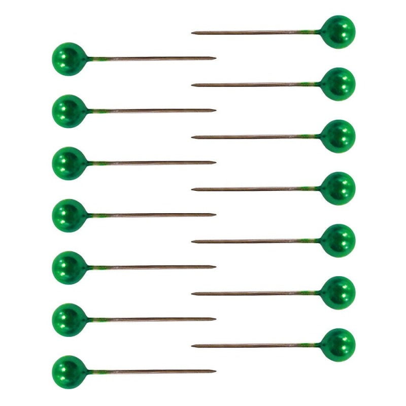 Szpilki dekoracyjne z perłowymi błyszczącymi główkami w kolorze zielone.
