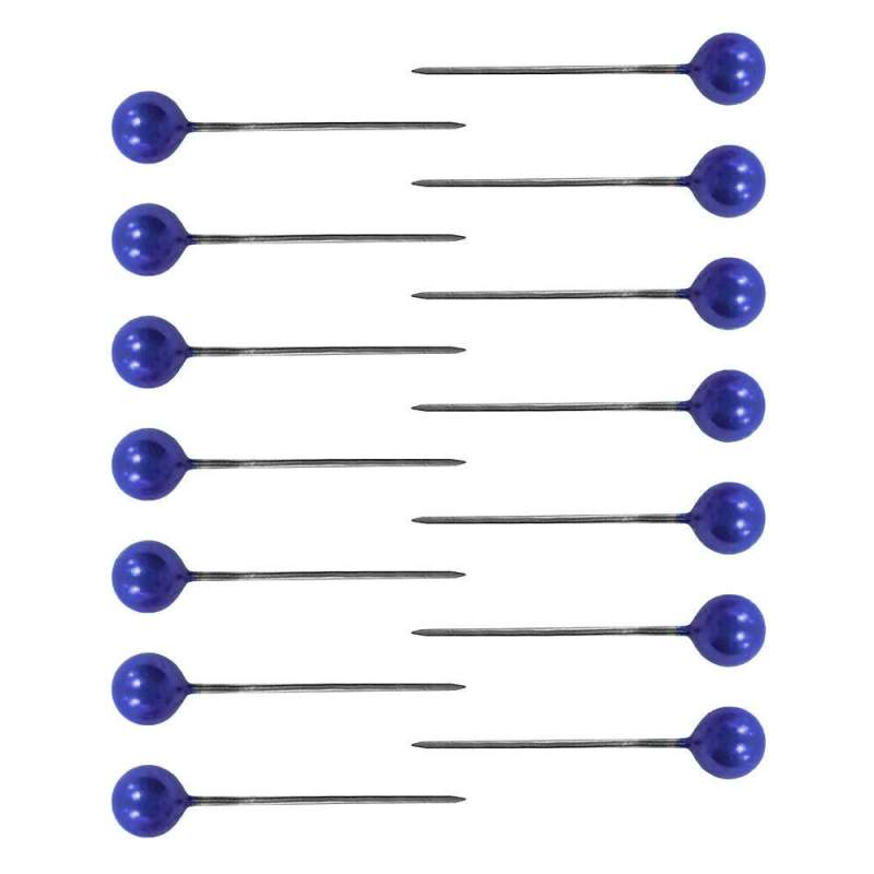 Szpilki dekoracyjne z perłowymi błyszczącymi główkami w kolorze niebieskim.