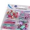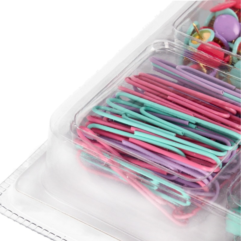 ➡️ W każdym takim zestawie znajdują się spinacze, kołki tablicowe, gumki recepturki i klipsy w mix kolorze .
