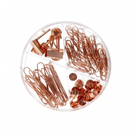 ➡️ W każdym takim zestawie znajdują się spinacze, pinezki i klipy w kolorze miedzianym lub srebrnym.