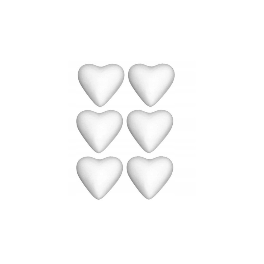 Dekoracje styropianowe 7 cm, serca (6 sztuk)
