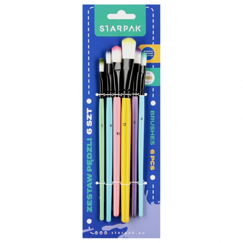 ✅ Zestaw pędzli szkolnych 6 sztuk pastelowe kolory Starpak. Stylowe i praktyczne!