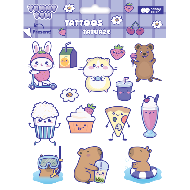 Tatuaże zmywalne Yummy Yum Kapibary 15x20cm Happy Color