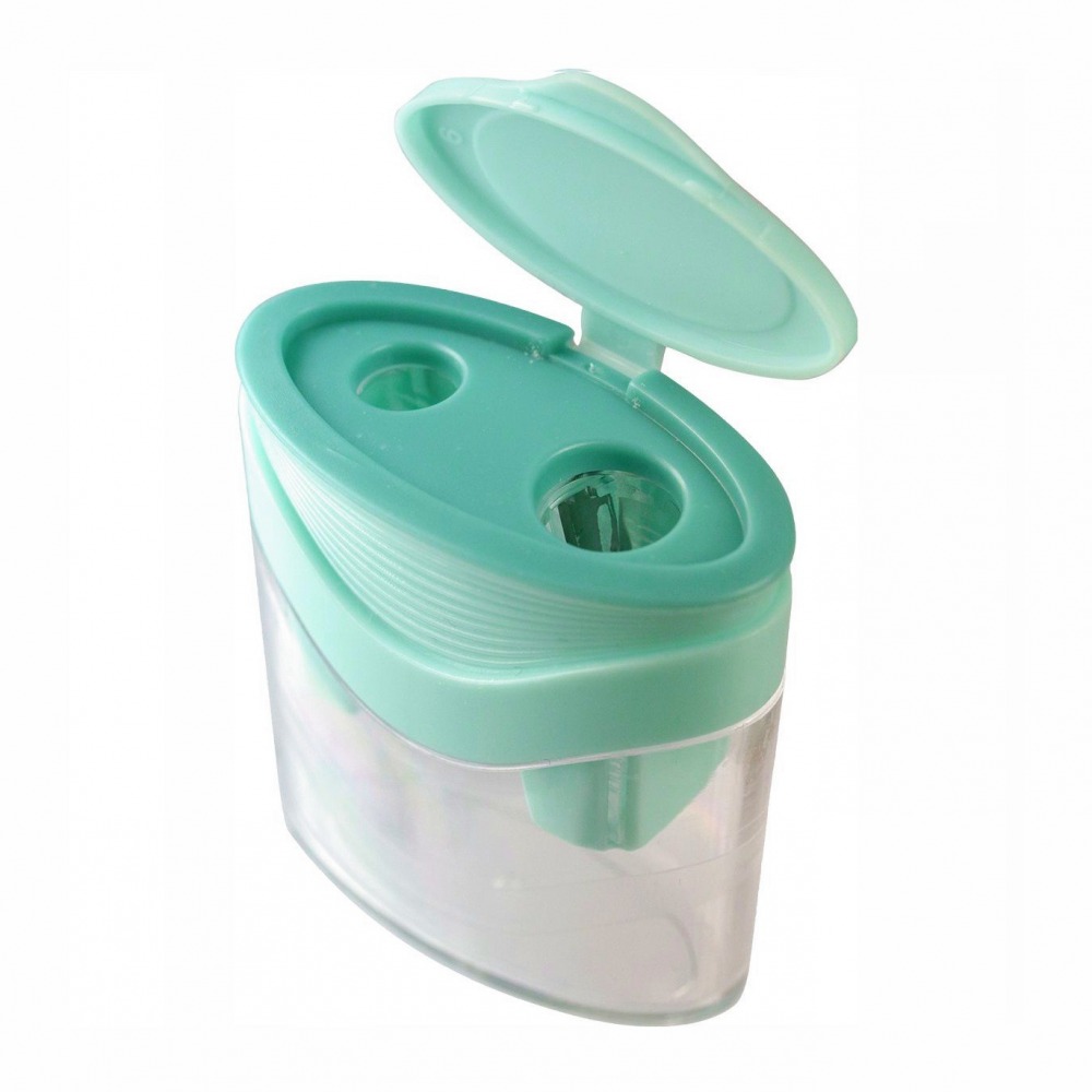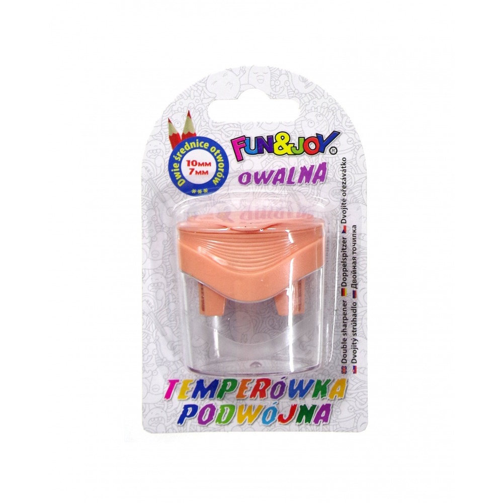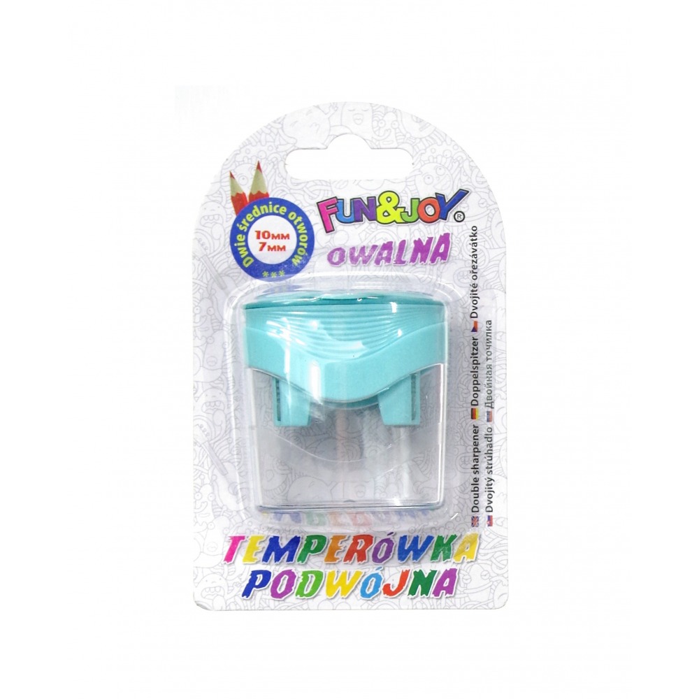 Plastikowa temperówka o ergonomicznym, owalnym kształcie ułatwiającym trzymanie.
