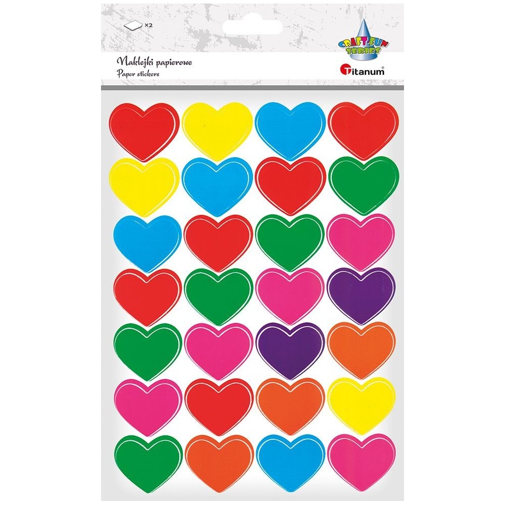 Naklejki papierowe kolorowe Serca Duże 2 ark Titanum