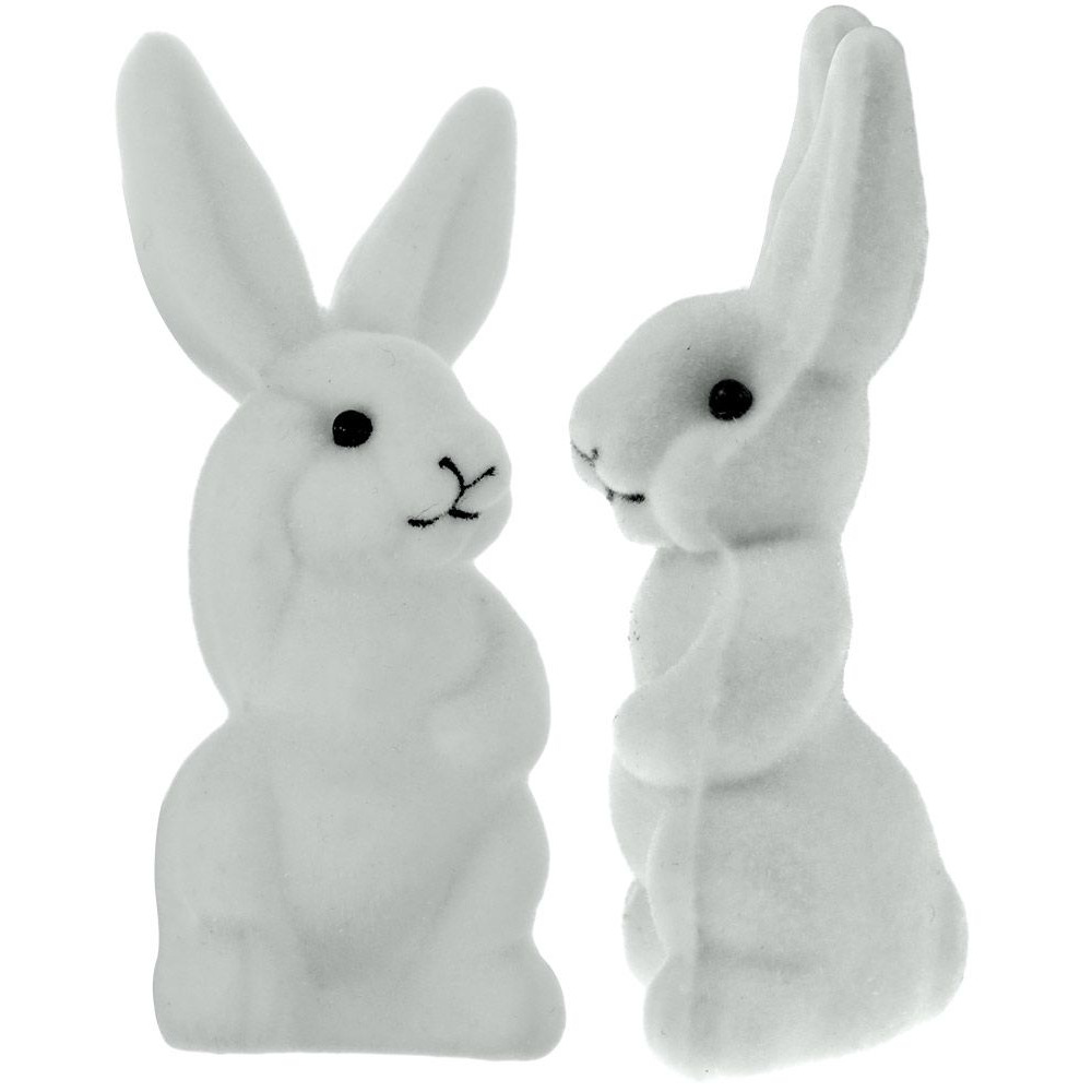 Zając flokowany 32x74x25mm biały, 2 sztuki.