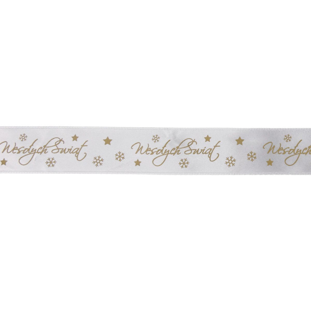 Wstążka satynowa biała Wesołych Świąt 25mm x 25 yd Titanum