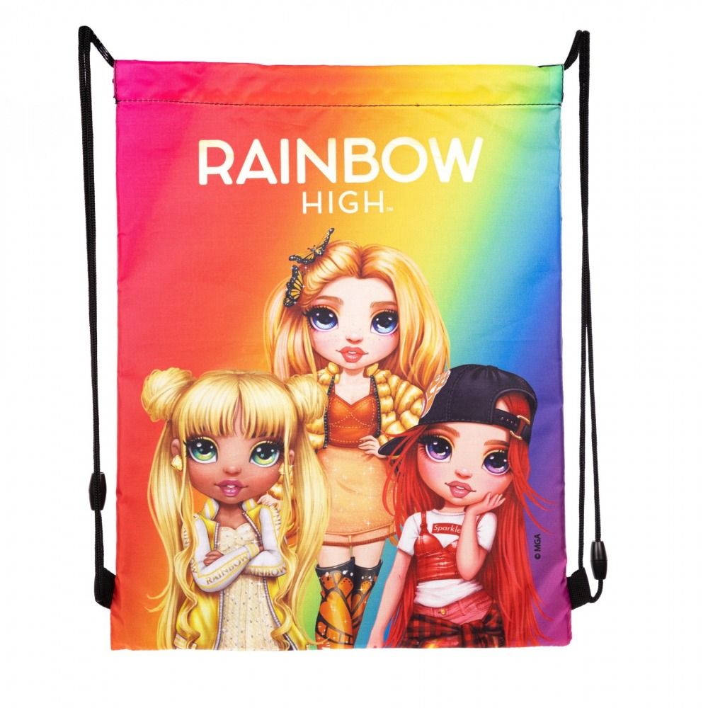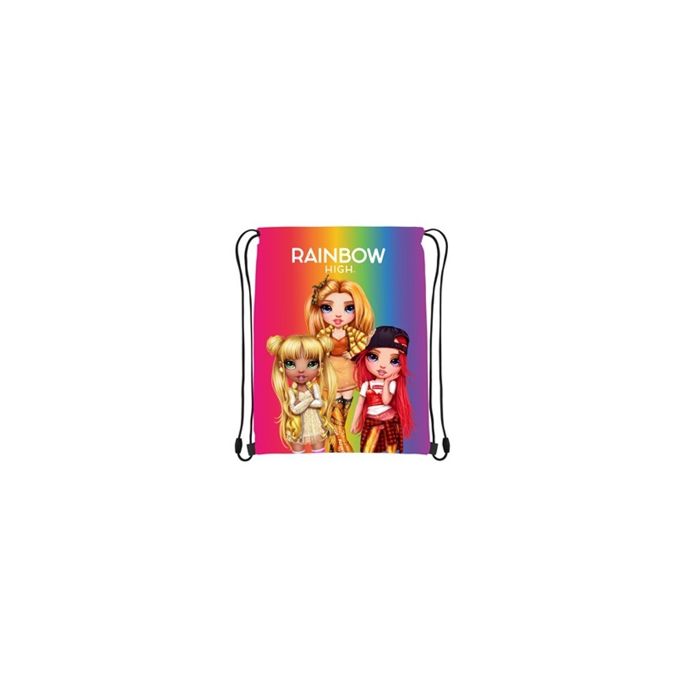 Worek na obuwie Rainbow High dla małej elegantki to absolutny hit tego sezonu. Na jego froncie znajduje się grafika z najpopularniejszymi lalkami, które pokochały miliony dziewczynek na całym świecie. Dołącz do barwnego świata szkoły Rainbow High i baw się razem z Ruby Anderson, Poppy Rowan i Sunny Madison. Worek posiada podwójne boczne sznurki ze złączką bezpieczeństwa, które umożliwiają noszenie go w rękach, na ramieniu czy na plecach. Dodatkowo na odwrocie worka na obuwie Rainbow High znajduje się plakietka do wypisania danych personalnych ucznia.