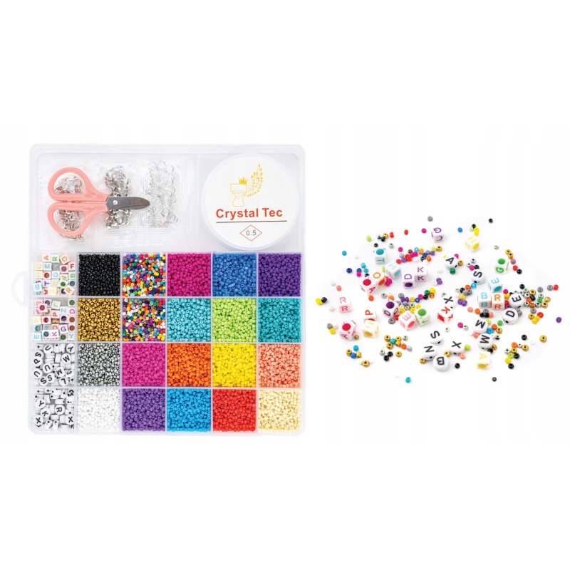 Prezentowany zestaw to prawdziwe skarby dla osób twórczych, którzy pragną dodać elegancji i blasku swoim projektom rękodzielniczym. Zawiera aż 24 różne kształty i kolory. To zapewnia niesamowitą paletę możliwości i kreatywności w Twoich projektach. Koraliki z otworem o wymiarach 2mm są łatwe do nawlekania na różne rodzaje nici czy drutów. W opakowaniu znajdują się wszelkie elementy pozwalające stworzyć bransoletki, naszyjniki czy breloczki. Zestaw jest dostarczany w praktycznym, zamykanym pudełku, które pomaga w utrzymaniu koralików w porządku i gotowości do użycia. Idealne do tworzenia biżuterii, ozdabiania odzieży, wykonywania ozdób do włosów, dekoracji dla domu i wiele innych projektów DIY. Niezależnie od tego, czy jesteś początkującym twórcą, czy doświadczonym projektantem, koraliki są doskonałe do każdego poziomu umiejętności.
