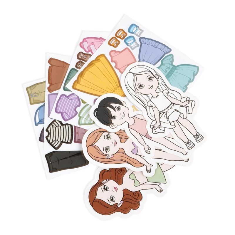 ⭐ W opakowaniu znajdziesz 15 postaci to ozdobienia, 60 naklejek z ubraniami,12 diamencików oraz 5 flamastrów.