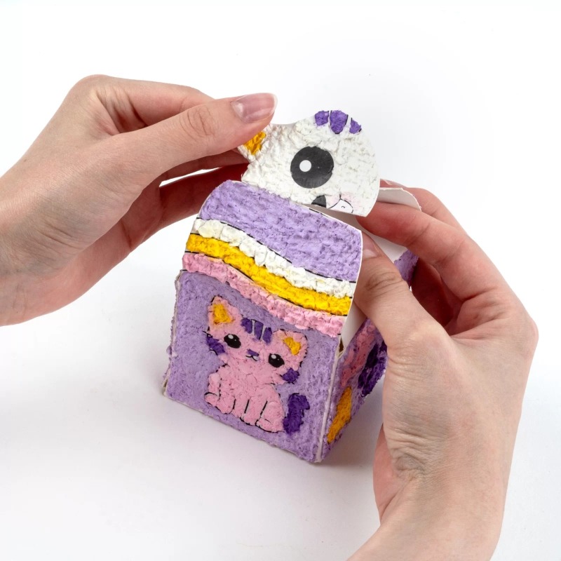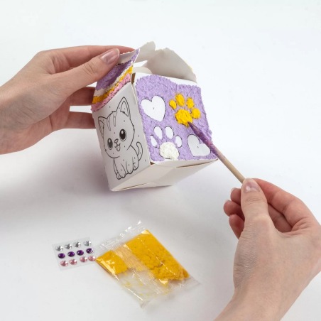 ⭐ W zestawie znajdziesz 5 kolorów masy papier – mâché, dzięki którym wykleisz pudełeczko, kierując się numerami na szablonie.