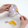 ⭐ Zestaw zawiera: szablon pudełka, 5 kolorów masy papierowej: biały, żółty, fioletowy jasny, fioletowy ciemny oraz różowy, rysik do nakładania masy oraz 12 diamentowych naklejek.