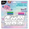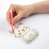 ⭐ W komplecie znajdziesz 3 magiczne karty w kształcie misia, kotka oraz pieska, pipetę do precyzyjnego dozowana wody oraz 6 kolorów pisaków.
