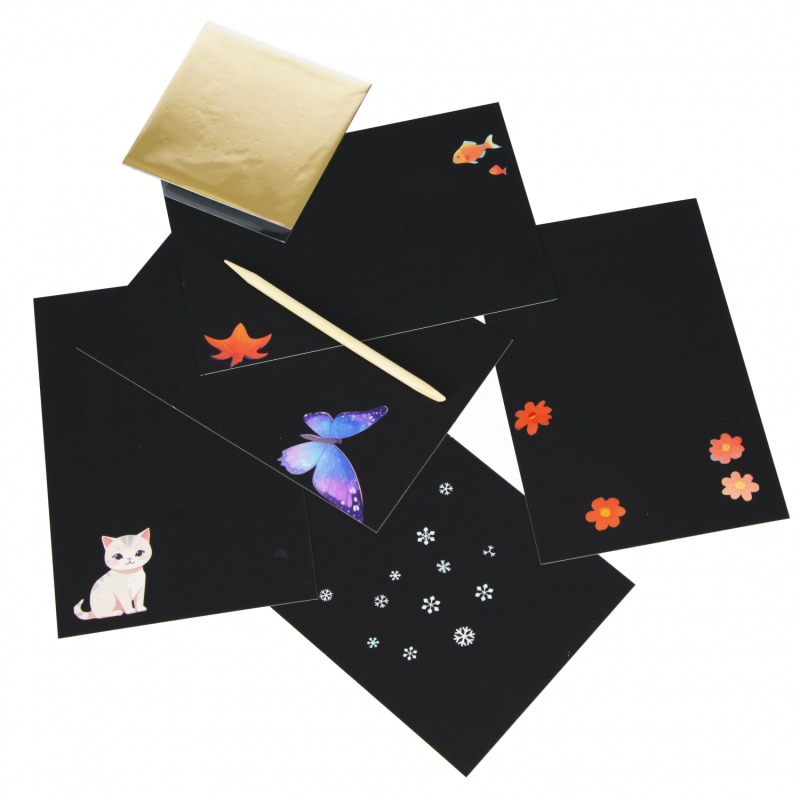 ⭐ Zestaw składa się z 5 wydrapywanek, 10 folii dekoracyjnych oraz 1 rylca.