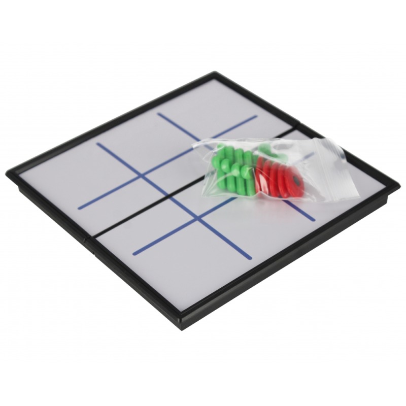 ✅ Zawartość zestawu: plansza podzielona na 9 kwadratowych pól, 5 plastikowych magnetycznych kształtów w formie krzyżyka i 5 plastikowych magnetycznych kształtów w formie kółka.