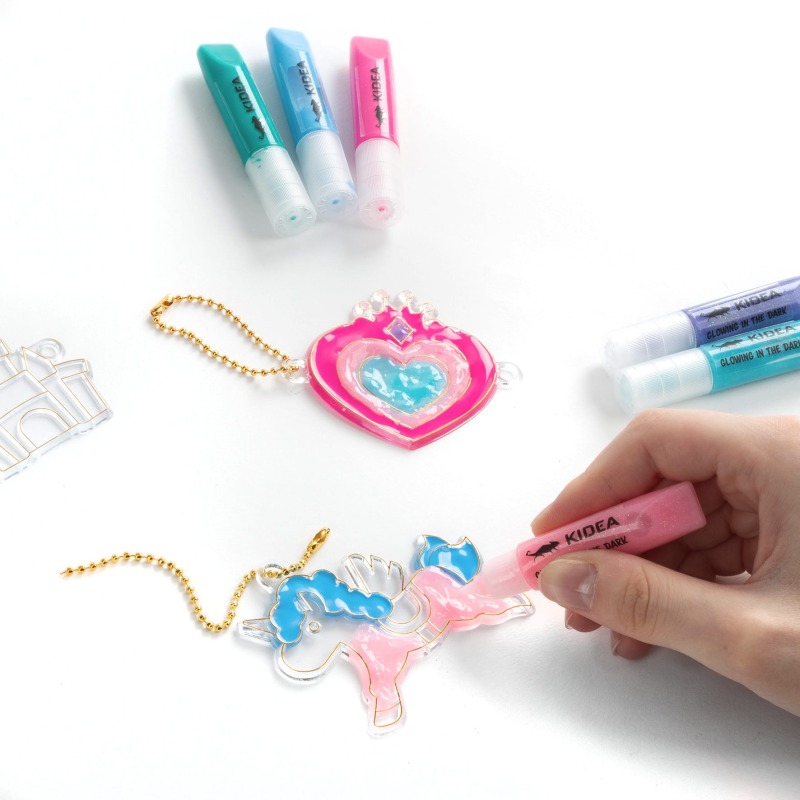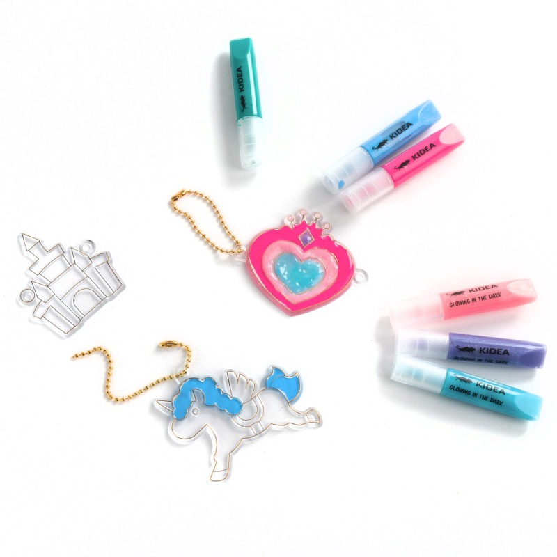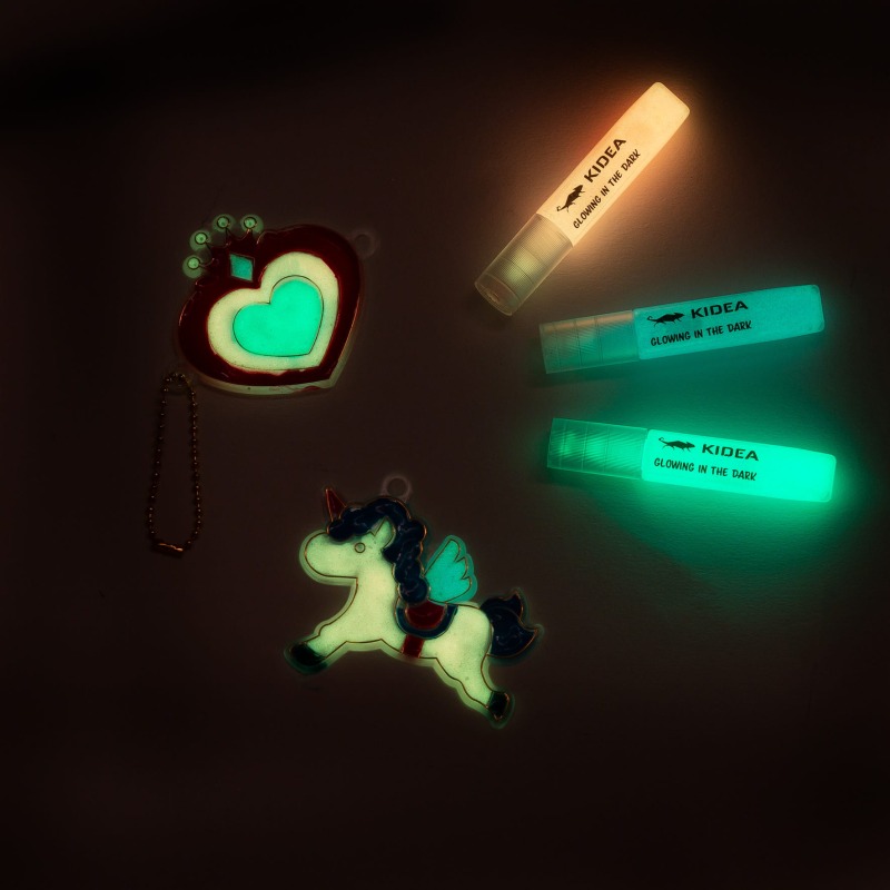 Zestaw zawieszek świecących w ciemności. Wzory jednorożca, zamku i serca są idealne dla tych, którzy kochają magię i fantazję. Wystarczy napełnić plastikowy szablon kolorowym żelem i odczekać aż wyschnie, by móc następnie umieścić je pod źródłem światła i zobaczyć po chwili jak pięknie świecą w ciemności. Są niezwykle urocze ale i praktyczne. Dzięki dołączonym łańcuszkom do zestawu idealne sprawdzą się do personalizacji plecaków, piórników lub kluczy.