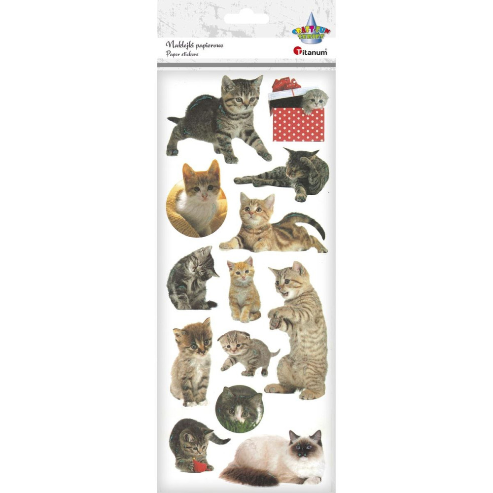 Naklejki papierowe koty z brokatem 13 szt Titanum